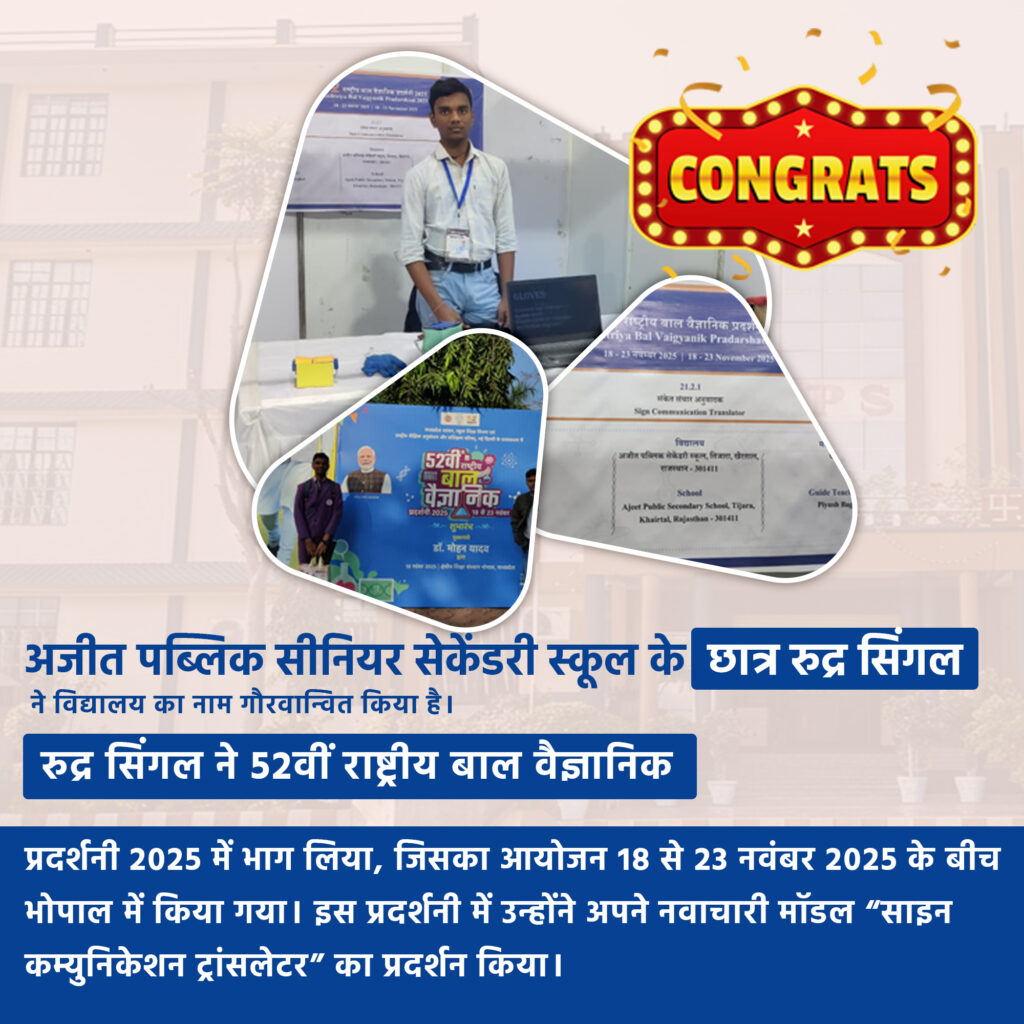 Ajeet Public Senior Secondary School proudly celebrates the remarkable achievement of its student, Utkarsh Sharma, who has excelled as a […]